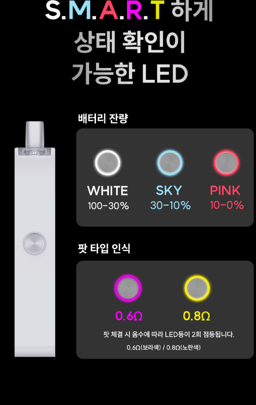 팟 체결 시 LED 색상으로도 확인 가능하며,